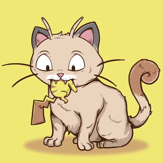 the game of cat and mouse has taken on a whole new meaning in Steven Lefcourt’s hilarious new Pokemon Illustration. Soon to be a shirt!