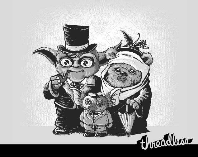 Father Yoda, his Ewok wife and their son Gizmo get together for a family photo in this great shirt by Vincent Bocognani. Reprints on sale at Threadless!
