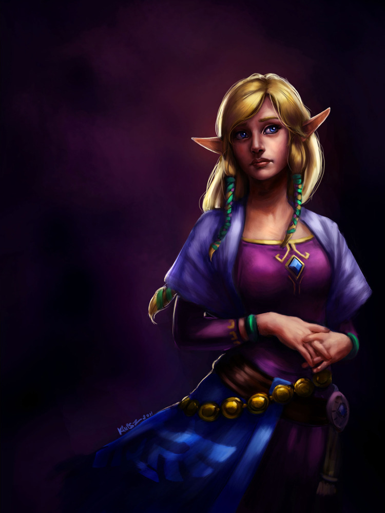 Princess Zelda looks a little worried in this beautiful “The Legend of Zelda: Skyward Sword” tribute illustration by Felipe Kimio.