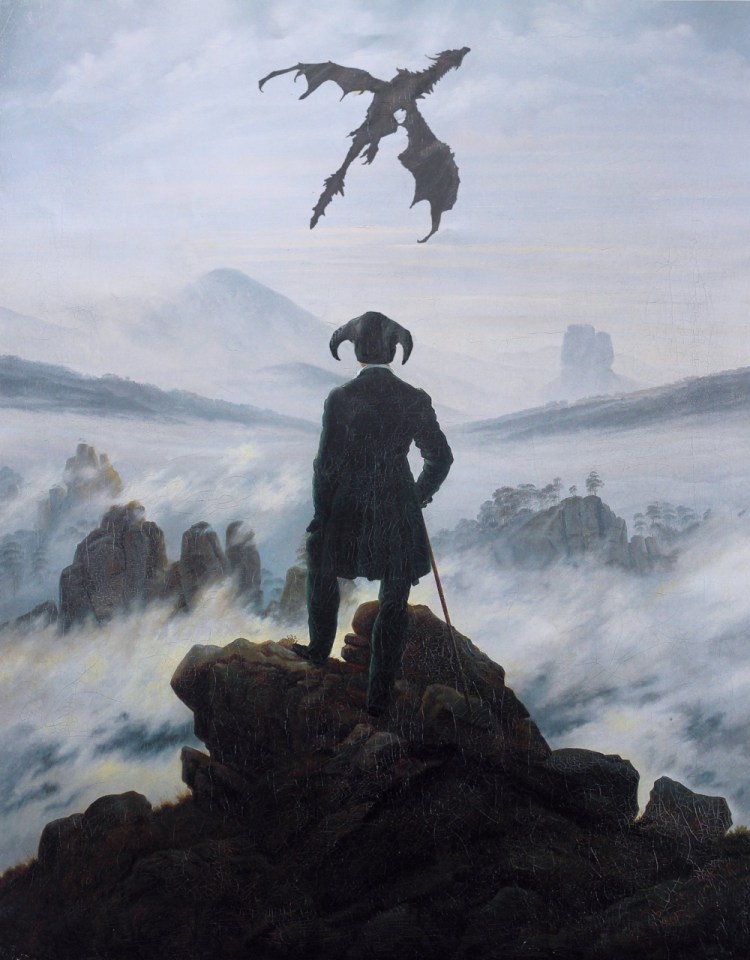 With inspiration from C.D. Friedrich’s “Wanderer In A Sea of Fog” painting, artist A.J. Hateley created this beautiful mash up.