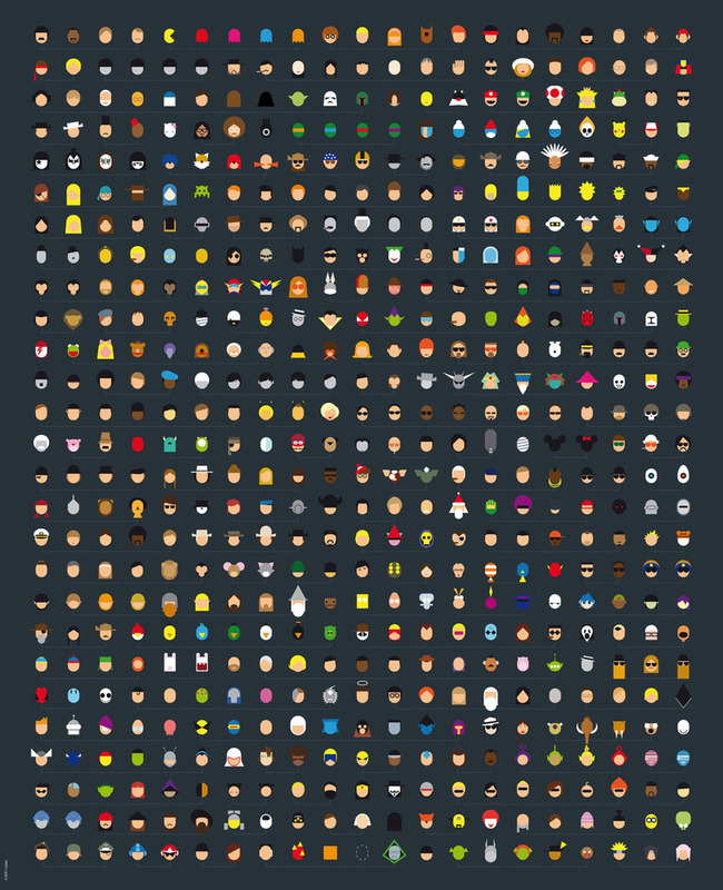 A massive amount of famous characters from video games, comics, film and music have been simplified and categorized by artist Grégoire Guillemin. His BIG / new design is now on sale in print form over at Society6. (Full Size)