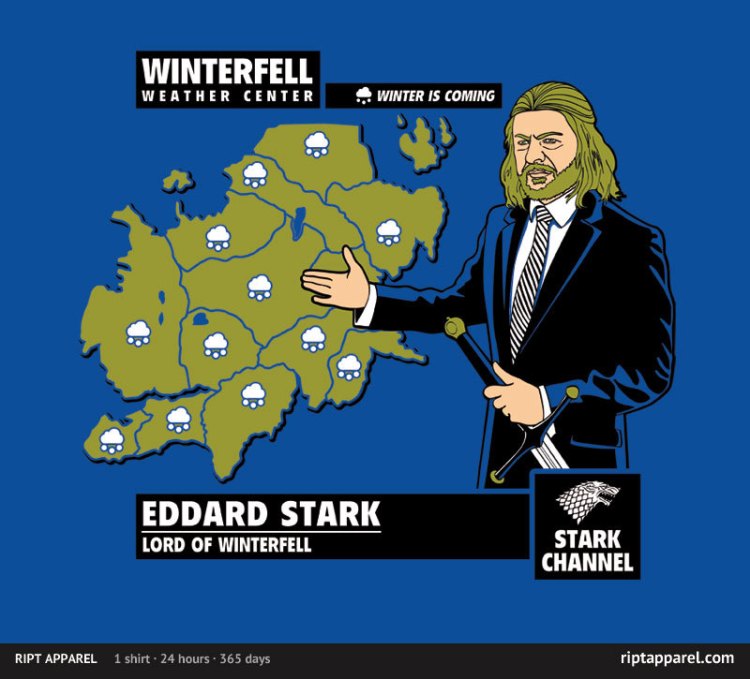 Lord Meteorologist Eddard Stark reports the Westeros weather that we all deserve. Faniseto’s Game of Thrones shirt is on sale today (12/28) at RIPT.