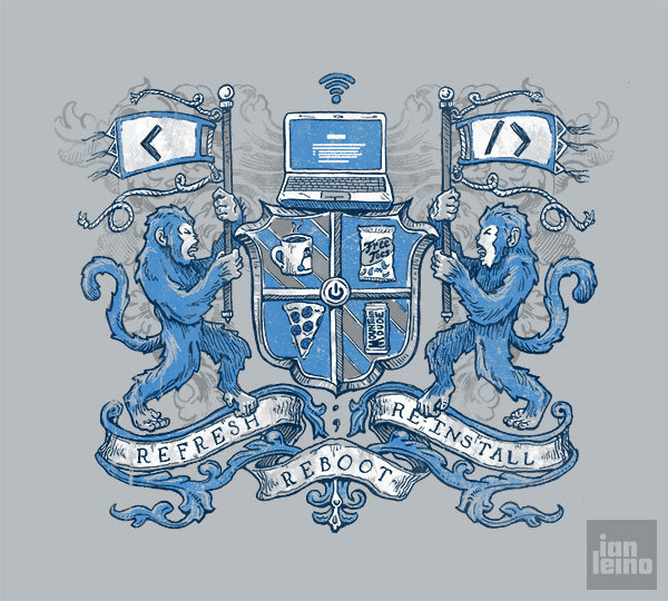 Coders rejoice! Ian Leino’s new shirt design gives all of us geeks our very own “Code of Arms”. On sale now over at Shirt.Woot.