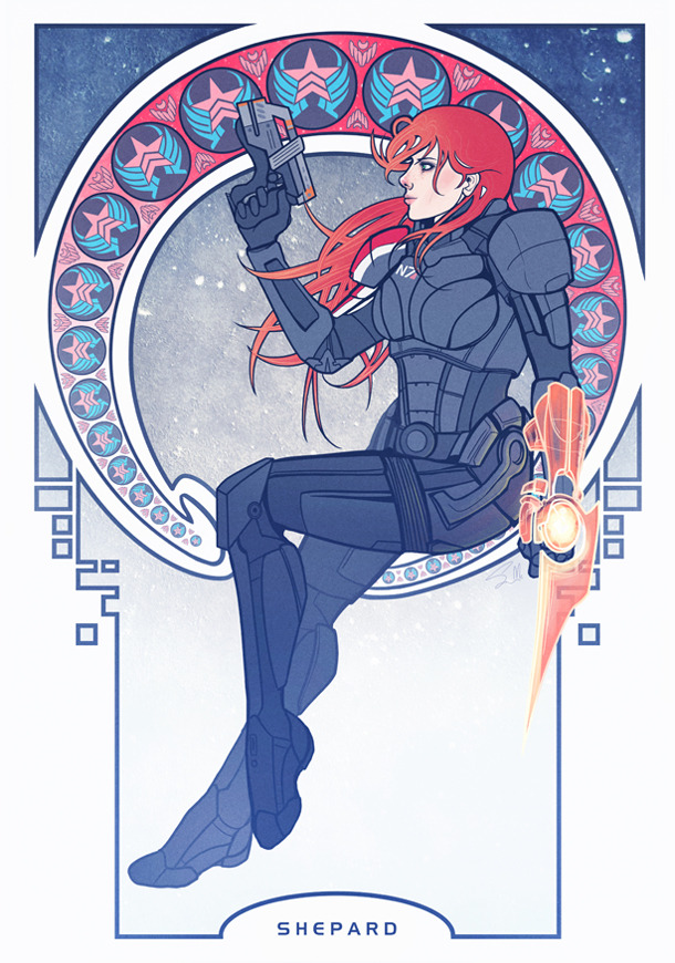 Sara McSorley added another Art Nouveau style piece to her gallery and gave it a sweet Mass Effect spin. “This is my favorite piece in the Citadel.”