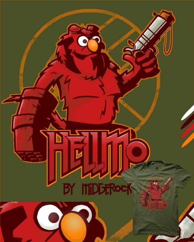Artist John Midgley’s rad mutated Hellboy / Elmo creation will not tolerate tickling of any sort. Shirts are now on sale at John’s RedBubble store.