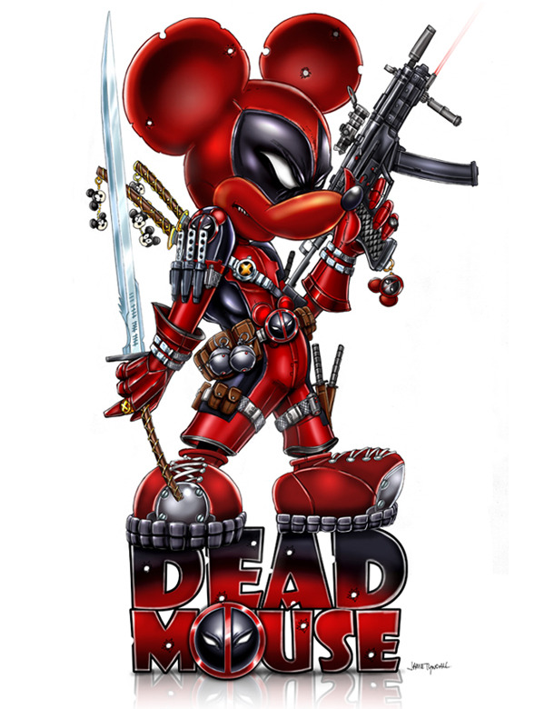 There is no way that Mickey Mouse is going away now! Jamie Tyndall’s Deadpool update to the friendly Disney character will be available at both MegaCon in Florida and WonderCon in Anaheim.