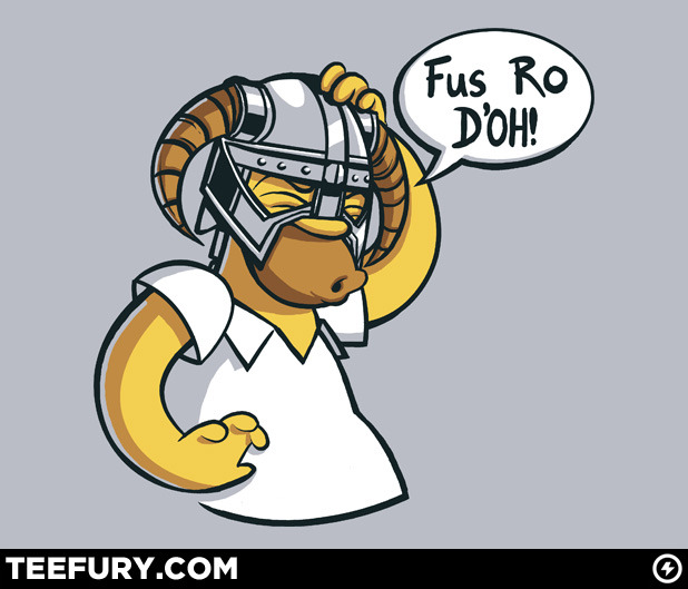 Skyrim’s “Fus Ro Dah!” has been given a Simpsons update by artist Michael Myers. Shirts are on sale for $10 today only (3/5) at TeeFury!