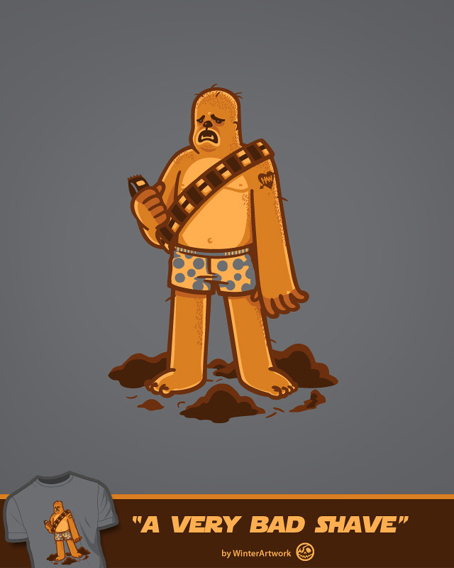 Chewie failed on his first attempt at giving himself a trim. Winter Artwork’s hilarious new Star Wars shirt design is now up for vote at Threadless!