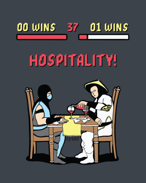 Get over here! As part of Shirt.Woot’s “Arcade Attire” week, artist David Soames gave Mortal Kombat more of a hospitable redesign.