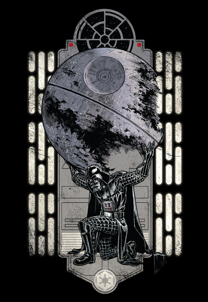 The weight of the entire Empire lies on the shoulders of the feared / awesome Darth Vader. Chris Kawagiwa’s killer Atlas / Star Wars shirt design is now on sale now at WeLoveFine for $25.