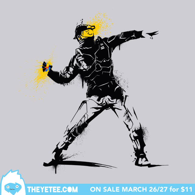 Master Chief and Banksy become one in Adam Rufino’s (Melee_Ninja) new mash up shirt design. On sale at The Yetee for only $11 March 26th & 27th.
