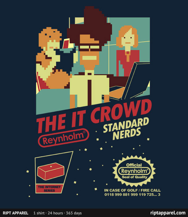 The IT Crowd gets the Nintendo cover art that it deserves in Tom Trager’s new shirt design. On sale today only (3/26) at RIPT for $10!
