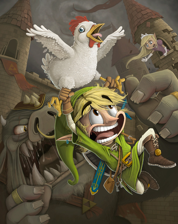 Link is having a really rough time getting a win in this humorous fun filled Legend of Zelda fan art illustration created by Dave Armstrong.