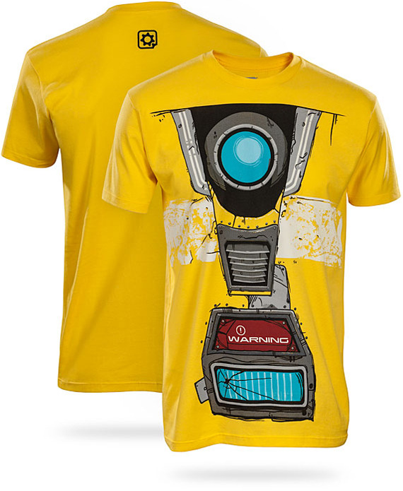 The Claptrap Costume Tee brings the hilarious CL4P-TP General Purpose Robot (Claptrap) from the Borderlands video games and puts him all up on a gold 100% cotton t-shirt. Now available to purchase at ThinkGeek.