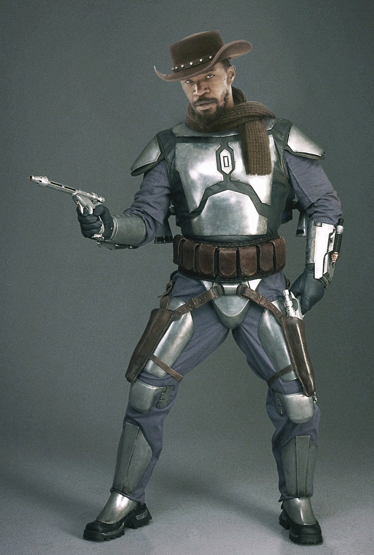 This awesome photo manipulation created by Florida artist Gordon Tarpley of GT Props mixes together both the Star Wars bounty hunter Jango Fett with Django Freeman, a character played by Jamie Foxx in Quentin Tarantino‘s western film Django Unchained.