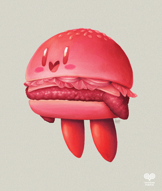 Kirby Patty, Video Game Illustration of Kirby as a Hamburger