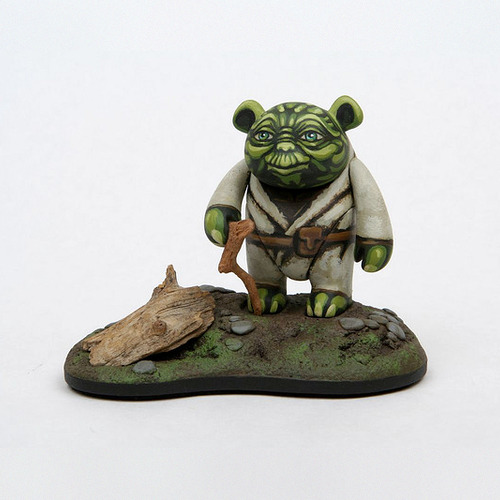 Yoda stands his ground in this excellent custom Star Wars themed Yoka by Wade Lageose. Created for the “Custom Yoka Show” at Screaming Sky Gallery.