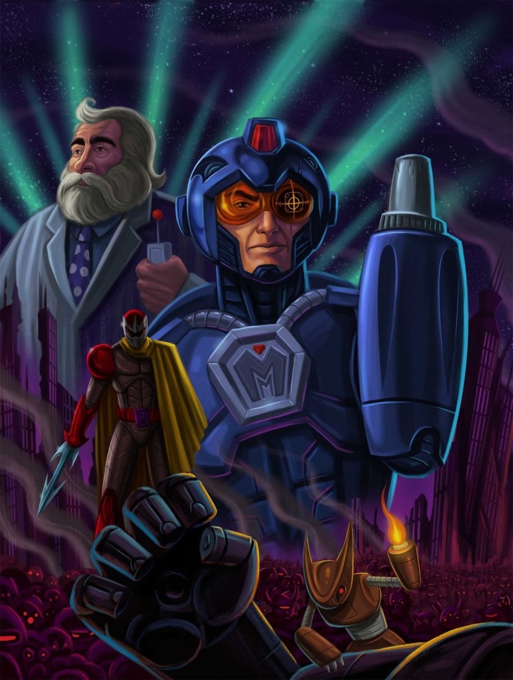 While I’m on the Mega Man subject, I ran across this cool illustration of the arm cannon carrying Man himself. He is in the process of dealing a lot of pain I’m sure.