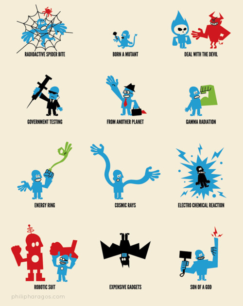 Phillip Haragos illustrates how a group of our comic book heroes came to be what they are today! Thanks to your awesome votes, this super design is now on sale for $20 $9.99 at Threadless!