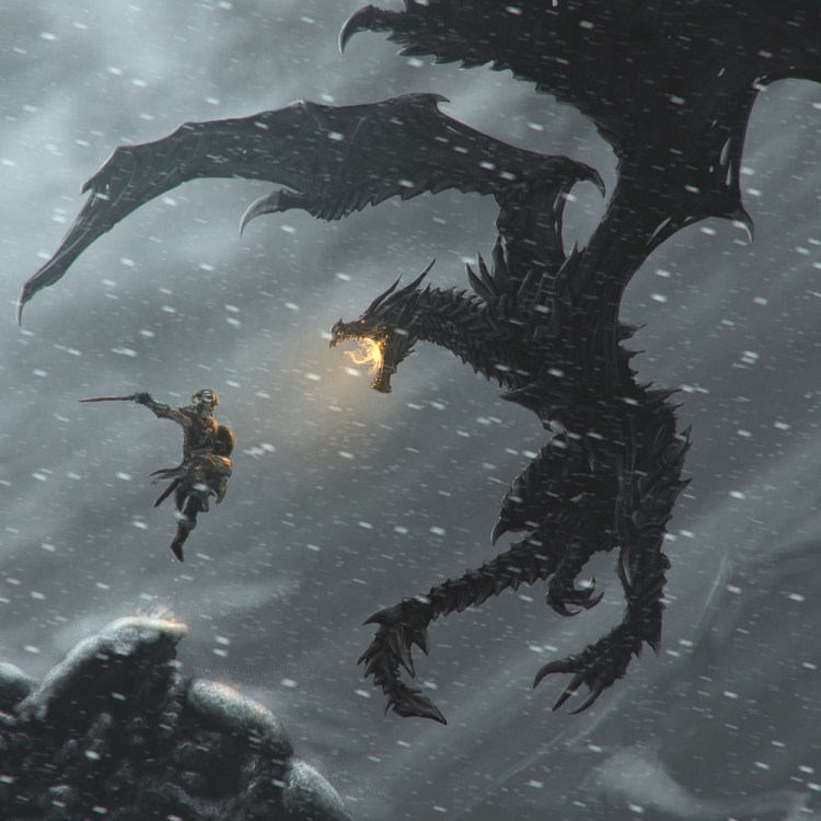 The massive dragon Alduin was brought to life from an Elder Scroll and is soon to be put to rest by Skyrim’s ultimate hero. Make sure to check out deviantARTist Ragaru’s full size illustration here. Very impressive!