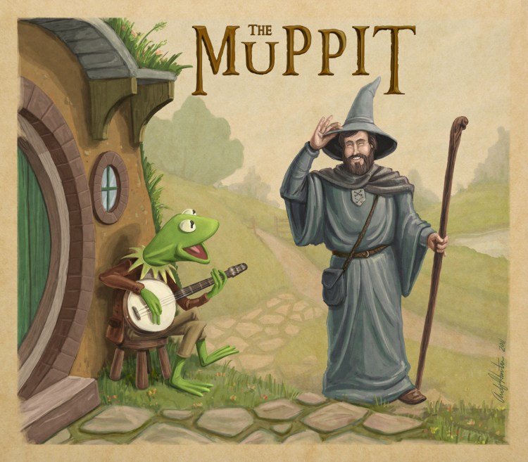 Kermit and Jim Henson get parts in Andy Hunter’s new version of “The Hobbit” by J. R. R. Tolkien. Created for Draw2d2’s Muppets / Tolkien mash up theme.